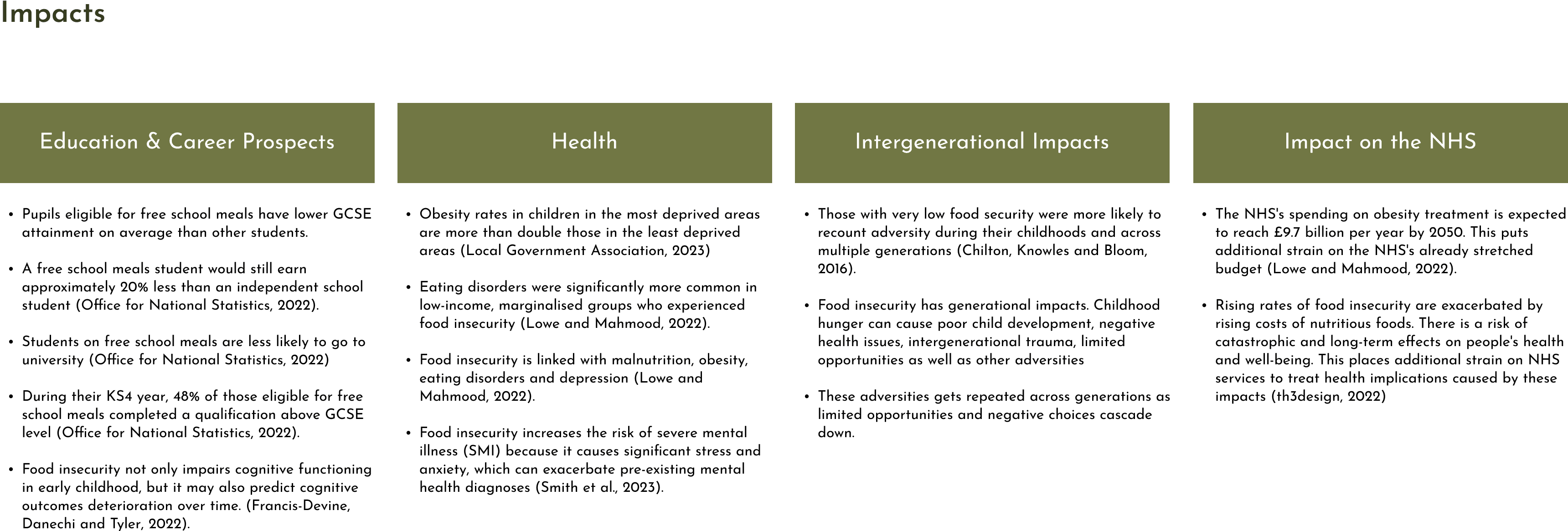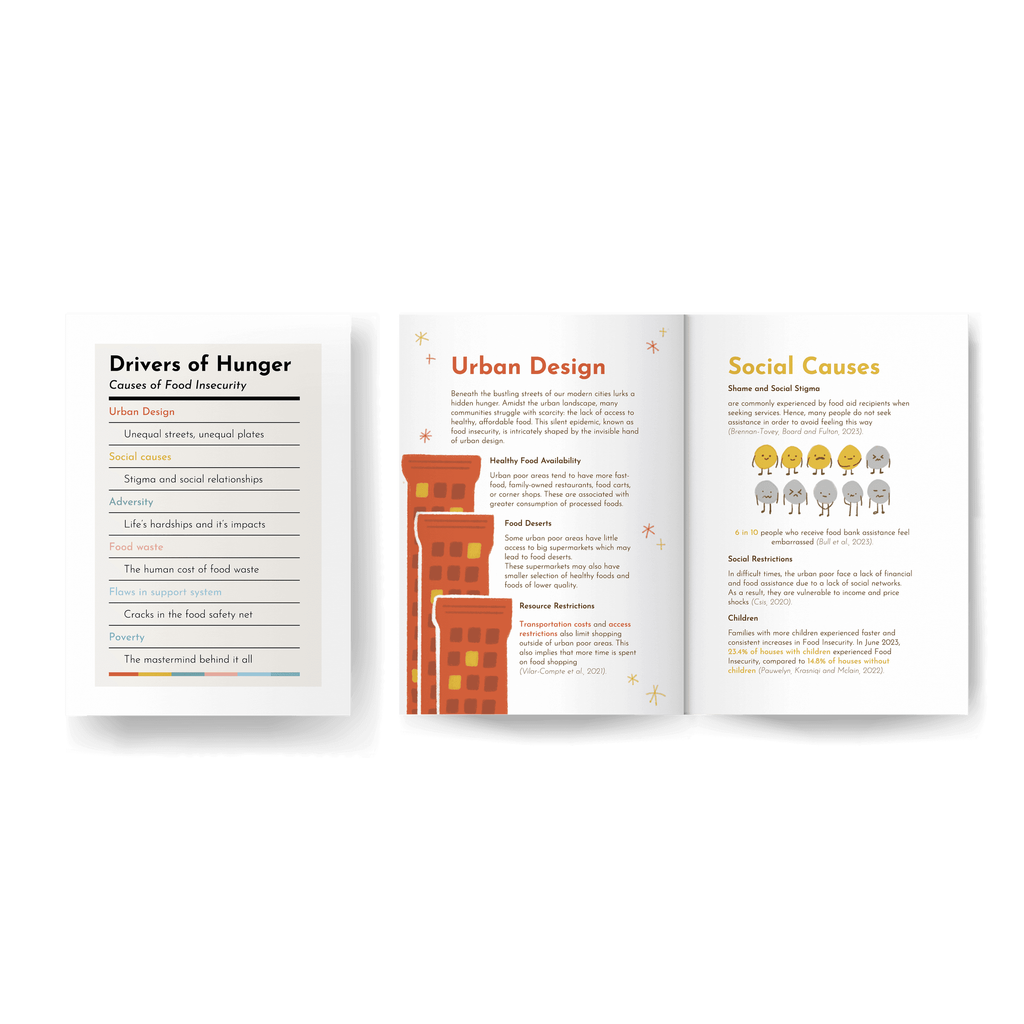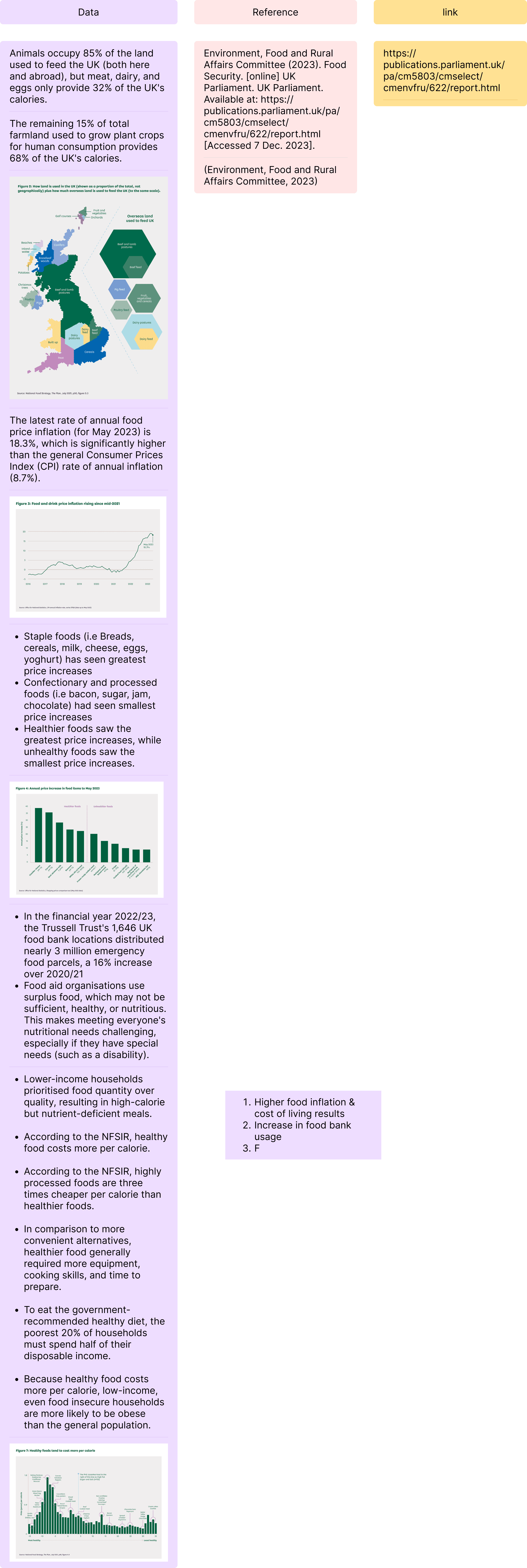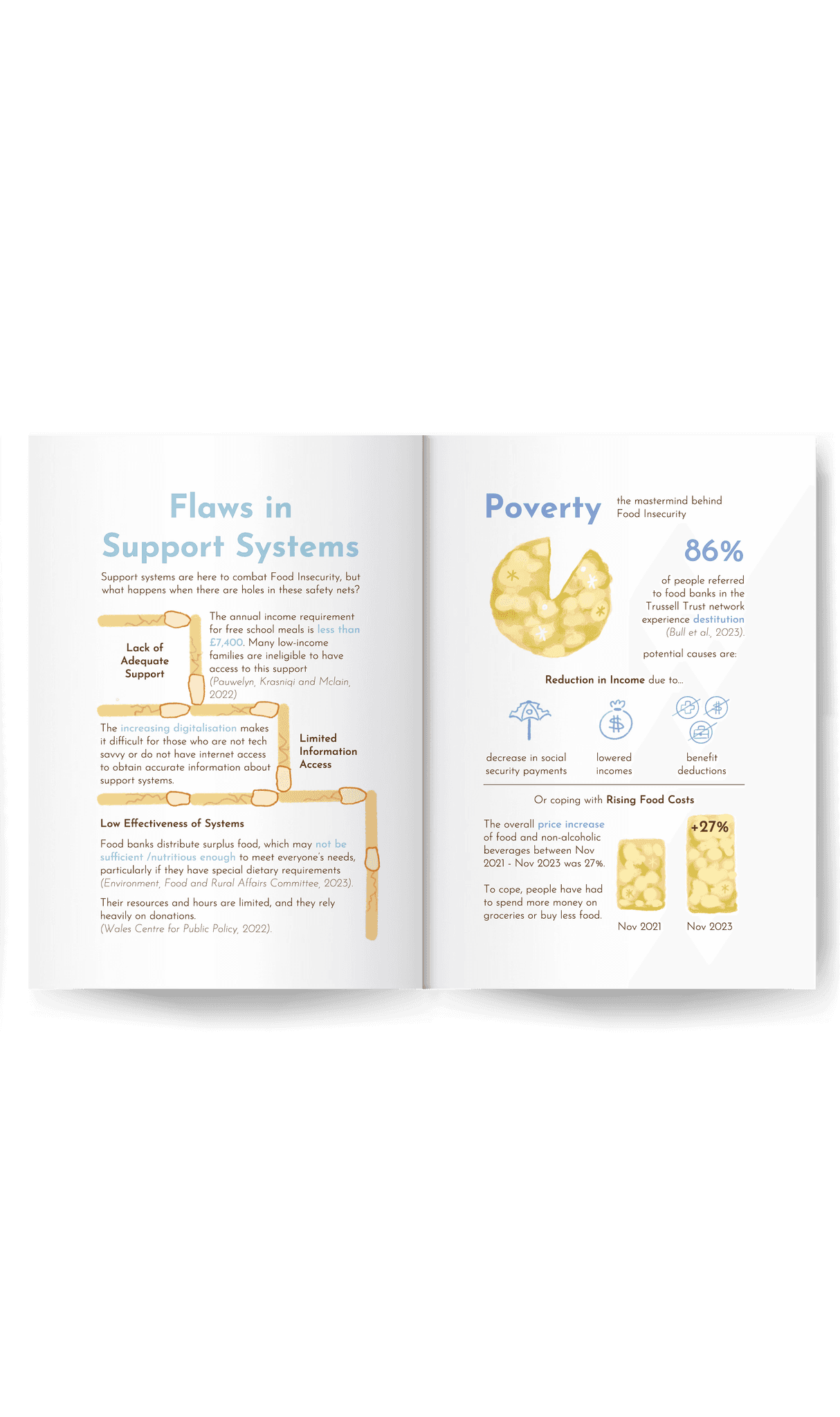 I researched the UK's food poverty landscape through a variety of sources (Articles, journals and research papers), and explored topics such as the causes and consequences of food insecurity, the role of urban design, food banks, obesity, food inflation and more.
